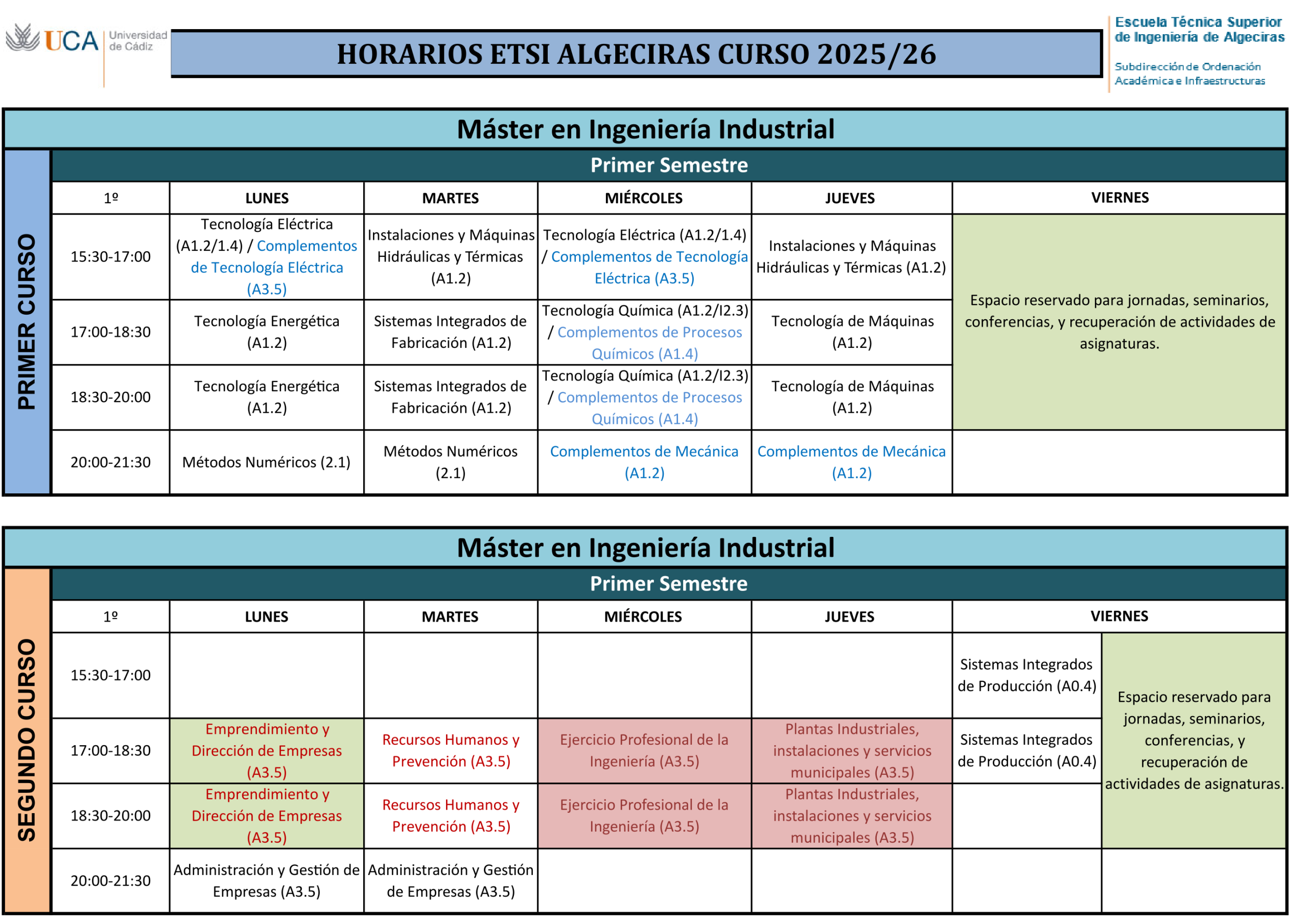 Horarios 2025-26