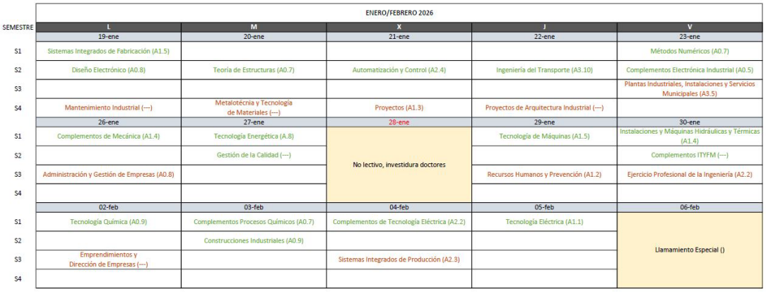 | Docencia primer semestre | 29 de septiembre de 2025 | 13 de enero de 2026 |
